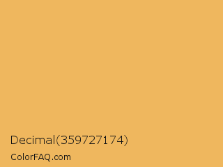 Decimal 359727174 Color is a light orange color and the nearest color is Rajah #f7b668. Hex code #efb75e and RGB value is rgb(239,183,94). In RGB color space, this color is composed of 94% red, 72% green, 37% blue, In CMYK color space, this color is composed of 0% cyan, 23% magenta, 61% yellow , 6% black , In HSL color space, this color has a hue angle of 37° , 82% saturation and 65% lightness.