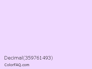Decimal 359761493 Color is a very light purple color and the nearest color is Blue Chalk #f1e9ff. Hex code #efd8ff and RGB value is rgb(239,216,255). In RGB color space, this color is composed of 94% red, 85% green, 100% blue, In CMYK color space, this color is composed of 6% cyan, 15% magenta, 0% yellow , 0% black , In HSL color space, this color has a hue angle of 275° , 100% saturation and 92% lightness.