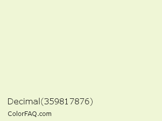 Decimal 359817876 Color is a very light lime color and the nearest color is Orinoco #f3fbd4. Hex code #eff6d6 and RGB value is rgb(239,246,214). In RGB color space, this color is composed of 94% red, 96% green, 84% blue, In CMYK color space, this color is composed of 3% cyan, 0% magenta, 13% yellow , 4% black , In HSL color space, this color has a hue angle of 73° , 64% saturation and 90% lightness.