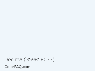 Decimal 359818033 Color is a almost white blue color and the nearest color is Catskill White #eef6f7. Hex code #eff6fb and RGB value is rgb(239,246,251). In RGB color space, this color is composed of 94% red, 96% green, 98% blue, In CMYK color space, this color is composed of 5% cyan, 2% magenta, 0% yellow , 2% black , In HSL color space, this color has a hue angle of 205° , 60% saturation and 96% lightness.