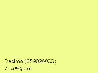 Decimal 359826033 Color is a light yellow color and the nearest color is Dolly #f9ff8b. Hex code #effe8f and RGB value is rgb(239,254,143). In RGB color space, this color is composed of 94% red, 100% green, 56% blue, In CMYK color space, this color is composed of 6% cyan, 0% magenta, 44% yellow , 0% black , In HSL color space, this color has a hue angle of 68° , 98% saturation and 78% lightness.