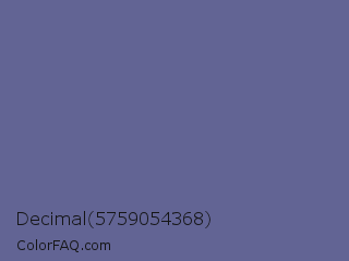 Decimal 5759054368 Color is a normal blue color and the nearest color is Dark Blue Gray #666699. Hex code #626494 and RGB value is rgb(98,100,148). In RGB color space, this color is composed of 38% red, 39% green, 58% blue, In CMYK color space, this color is composed of 34% cyan, 32% magenta, 0% yellow , 42% black , In HSL color space, this color has a hue angle of 238° , 20% saturation and 48% lightness.