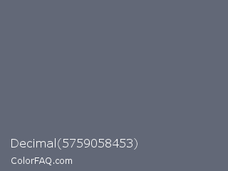 Decimal 5759058453 Color is a normal blue color and the nearest color is Shuttle Gray #5f6672. Hex code #626877 and RGB value is rgb(98,104,119). In RGB color space, this color is composed of 38% red, 41% green, 47% blue, In CMYK color space, this color is composed of 18% cyan, 13% magenta, 0% yellow , 53% black , In HSL color space, this color has a hue angle of 223° , 10% saturation and 43% lightness.