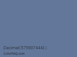 Decimal 5759074441 Color is a normal blue color and the nearest color is Lynch #697e9a. Hex code #627799 and RGB value is rgb(98,119,153). In RGB color space, this color is composed of 38% red, 47% green, 60% blue, In CMYK color space, this color is composed of 36% cyan, 22% magenta, 0% yellow , 40% black , In HSL color space, this color has a hue angle of 217° , 22% saturation and 49% lightness.