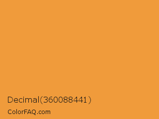 Decimal 360088441 Color is a normal orange color and the nearest color is Neon Carrot Crayola #ff9933. Hex code #f09b3b and RGB value is rgb(240,155,59). In RGB color space, this color is composed of 94% red, 61% green, 23% blue, In CMYK color space, this color is composed of 0% cyan, 35% magenta, 75% yellow , 6% black , In HSL color space, this color has a hue angle of 32° , 86% saturation and 59% lightness.
