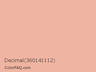 Decimal 360141112 Color is a light color and the nearest color is Rose Bud #fbb2a3. Hex code #f0b5a2 and RGB value is rgb(240,181,162). In RGB color space, this color is composed of 94% red, 71% green, 64% blue, In CMYK color space, this color is composed of 0% cyan, 25% magenta, 33% yellow , 6% black , In HSL color space, this color has a hue angle of 15° , 72% saturation and 79% lightness.