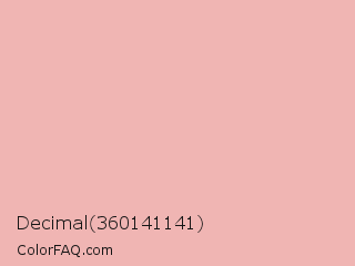 Decimal 360141141 Color is a very light red color and the nearest color is Shilo #e8b9b3. Hex code #f0b5b3 and RGB value is rgb(240,181,179). In RGB color space, this color is composed of 94% red, 71% green, 70% blue, In CMYK color space, this color is composed of 0% cyan, 25% magenta, 25% yellow , 6% black , In HSL color space, this color has a hue angle of 2° , 67% saturation and 82% lightness.