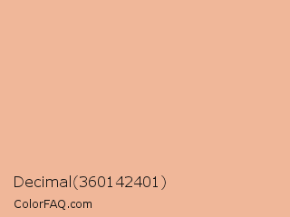 Decimal 360142401 Color is a light orange color and the nearest color is Rose Bud #fbb2a3. Hex code #f0b799 and RGB value is rgb(240,183,153). In RGB color space, this color is composed of 94% red, 72% green, 60% blue, In CMYK color space, this color is composed of 0% cyan, 24% magenta, 36% yellow , 6% black , In HSL color space, this color has a hue angle of 21° , 74% saturation and 77% lightness.