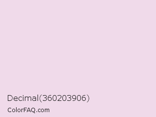 Decimal 360203906 Color is a very light magenta color and the nearest color is Cherub #f8d9e9. Hex code #f0daea and RGB value is rgb(240,218,234). In RGB color space, this color is composed of 94% red, 85% green, 92% blue, In CMYK color space, this color is composed of 0% cyan, 9% magenta, 3% yellow , 6% black , In HSL color space, this color has a hue angle of 316° , 42% saturation and 90% lightness.