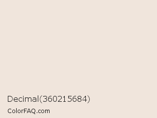 Decimal 360215684 Color is a very light orange color and the nearest color is Bizarre #eededa. Hex code #f0e5dc and RGB value is rgb(240,229,220). In RGB color space, this color is composed of 94% red, 90% green, 86% blue, In CMYK color space, this color is composed of 0% cyan, 5% magenta, 8% yellow , 6% black , In HSL color space, this color has a hue angle of 27° , 40% saturation and 90% lightness.