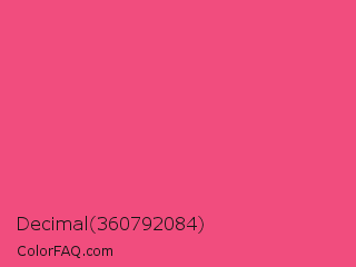 Decimal 360792084 Color is a light rose color and the nearest color is Dark Pink #e75480. Hex code #f14d7e and RGB value is rgb(241,77,126). In RGB color space, this color is composed of 95% red, 30% green, 49% blue, In CMYK color space, this color is composed of 0% cyan, 68% magenta, 48% yellow , 5% black , In HSL color space, this color has a hue angle of 342° , 85% saturation and 62% lightness.