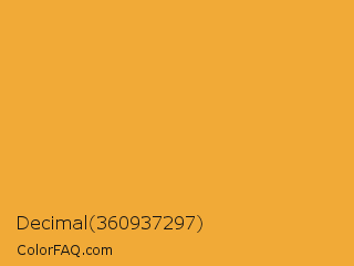 Decimal 360937297 Color is a normal orange color and the nearest color is Tulip Tree #eab33b. Hex code #f1aa37 and RGB value is rgb(241,170,55). In RGB color space, this color is composed of 95% red, 67% green, 22% blue, In CMYK color space, this color is composed of 0% cyan, 29% magenta, 77% yellow , 5% black , In HSL color space, this color has a hue angle of 37° , 87% saturation and 58% lightness.