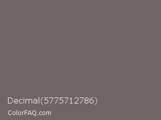 Decimal 5775712786 Color is a normal red color and the nearest color is Flint #6f6a61. Hex code #716464 and RGB value is rgb(113,100,100). In RGB color space, this color is composed of 44% red, 39% green, 39% blue, In CMYK color space, this color is composed of 0% cyan, 12% magenta, 12% yellow , 56% black , In HSL color space, this color has a hue angle of 0° , 6% saturation and 42% lightness.