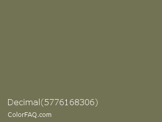 Decimal 5776168306 Color is a normal yellow color and the nearest color is Crocodile #736d58. Hex code #727354 and RGB value is rgb(114,115,84). In RGB color space, this color is composed of 45% red, 45% green, 33% blue, In CMYK color space, this color is composed of 1% cyan, 0% magenta, 27% yellow , 55% black , In HSL color space, this color has a hue angle of 62° , 16% saturation and 39% lightness.