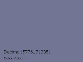 Decimal 5776171335 Color is a normal blue color and the nearest color is Rhythm #777696. Hex code #727593 and RGB value is rgb(114,117,147). In RGB color space, this color is composed of 45% red, 46% green, 58% blue, In CMYK color space, this color is composed of 22% cyan, 20% magenta, 0% yellow , 42% black , In HSL color space, this color has a hue angle of 235° , 13% saturation and 51% lightness.