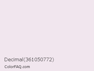 Decimal 361050772 Color is a very light magenta color and the nearest color is Prim #f0e2ec. Hex code #f1e6ee and RGB value is rgb(241,230,238). In RGB color space, this color is composed of 95% red, 90% green, 93% blue, In CMYK color space, this color is composed of 0% cyan, 5% magenta, 1% yellow , 5% black , In HSL color space, this color has a hue angle of 316° , 28% saturation and 92% lightness.