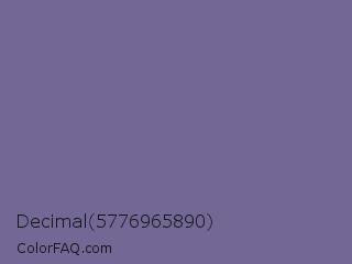 Decimal 5776965890 Color is a normal indigo color and the nearest color is Kimberly #736c9f. Hex code #736796 and RGB value is rgb(115,103,150). In RGB color space, this color is composed of 45% red, 40% green, 59% blue, In CMYK color space, this color is composed of 23% cyan, 31% magenta, 0% yellow , 41% black , In HSL color space, this color has a hue angle of 255° , 19% saturation and 50% lightness.