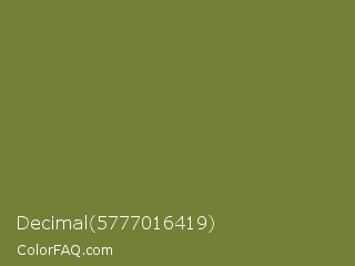 Decimal 5777016419 Color is a normal lime color and the nearest color is Pesto #7c7631. Hex code #738137 and RGB value is rgb(115,129,55). In RGB color space, this color is composed of 45% red, 51% green, 22% blue, In CMYK color space, this color is composed of 11% cyan, 0% magenta, 57% yellow , 49% black , In HSL color space, this color has a hue angle of 71° , 40% saturation and 36% lightness.