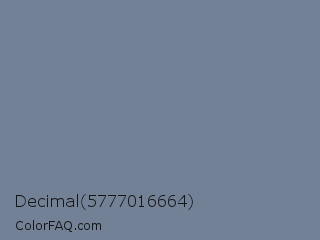 Decimal 5777016664 Color is a normal blue color and the nearest color is Slate Gray #708090. Hex code #738196 and RGB value is rgb(115,129,150). In RGB color space, this color is composed of 45% red, 51% green, 59% blue, In CMYK color space, this color is composed of 23% cyan, 14% magenta, 0% yellow , 41% black , In HSL color space, this color has a hue angle of 216° , 14% saturation and 52% lightness.