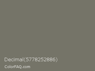 Decimal 5778252886 Color is a normal yellow color and the nearest color is Pablo #776f61. Hex code #757468 and RGB value is rgb(117,116,104). In RGB color space, this color is composed of 46% red, 45% green, 41% blue, In CMYK color space, this color is composed of 0% cyan, 1% magenta, 11% yellow , 54% black , In HSL color space, this color has a hue angle of 55° , 6% saturation and 43% lightness.