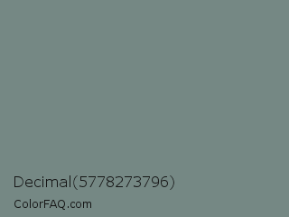 Decimal 5778273796 Color is a normal cyan color and the nearest color is Blue Smoke #748881. Hex code #758884 and RGB value is rgb(117,136,132). In RGB color space, this color is composed of 46% red, 53% green, 52% blue, In CMYK color space, this color is composed of 14% cyan, 0% magenta, 3% yellow , 47% black , In HSL color space, this color has a hue angle of 167° , 8% saturation and 50% lightness.