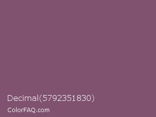 Decimal 5792351830 Color is a normal magenta color and the nearest color is Twilight Lavender #8a496b. Hex code #805270 and RGB value is rgb(128,82,112). In RGB color space, this color is composed of 50% red, 32% green, 44% blue, In CMYK color space, this color is composed of 0% cyan, 36% magenta, 13% yellow , 50% black , In HSL color space, this color has a hue angle of 321° , 22% saturation and 41% lightness.