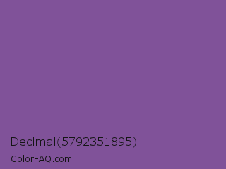 Decimal 5792351895 Color is a normal purple color and the nearest color is Dark Lavender #734f96. Hex code #805299 and RGB value is rgb(128,82,153). In RGB color space, this color is composed of 50% red, 32% green, 60% blue, In CMYK color space, this color is composed of 16% cyan, 46% magenta, 0% yellow , 40% black , In HSL color space, this color has a hue angle of 279° , 30% saturation and 46% lightness.