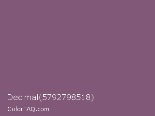Decimal 5792798518 Color is a normal magenta color and the nearest color is Falcon #7f626d. Hex code #815878 and RGB value is rgb(129,88,120). In RGB color space, this color is composed of 51% red, 35% green, 47% blue, In CMYK color space, this color is composed of 0% cyan, 32% magenta, 7% yellow , 49% black , In HSL color space, this color has a hue angle of 313° , 19% saturation and 43% lightness.