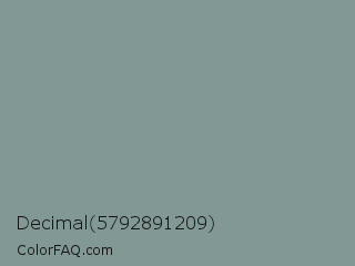 Decimal 5792891209 Color is a normal cyan color and the nearest color is Regent Gray #86949f. Hex code #819895 and RGB value is rgb(129,152,149). In RGB color space, this color is composed of 51% red, 60% green, 58% blue, In CMYK color space, this color is composed of 15% cyan, 0% magenta, 2% yellow , 40% black , In HSL color space, this color has a hue angle of 172° , 10% saturation and 55% lightness.