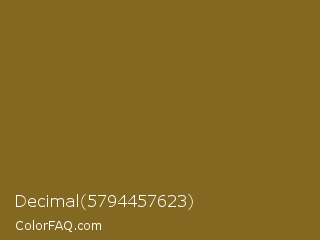 Decimal 5794457623 Color is a normal orange color and the nearest color is Kumera #886221. Hex code #836821 and RGB value is rgb(131,104,33). In RGB color space, this color is composed of 51% red, 41% green, 13% blue, In CMYK color space, this color is composed of 0% cyan, 21% magenta, 75% yellow , 49% black , In HSL color space, this color has a hue angle of 43° , 60% saturation and 32% lightness.