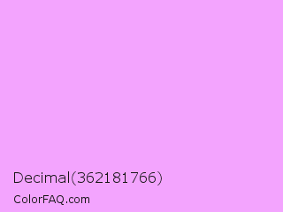 Decimal 362181766 Color is a very light magenta color and the nearest color is Rich Brilliant Lavender #f1a7fe. Hex code #f3a4fe and RGB value is rgb(243,164,254). In RGB color space, this color is composed of 95% red, 64% green, 100% blue, In CMYK color space, this color is composed of 4% cyan, 35% magenta, 0% yellow , 0% black , In HSL color space, this color has a hue angle of 293° , 98% saturation and 82% lightness.