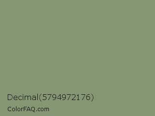 Decimal 5794972176 Color is a normal green color and the nearest color is Battleship Gray #828f72. Hex code #849672 and RGB value is rgb(132,150,114). In RGB color space, this color is composed of 52% red, 59% green, 45% blue, In CMYK color space, this color is composed of 12% cyan, 0% magenta, 24% yellow , 41% black , In HSL color space, this color has a hue angle of 90° , 15% saturation and 52% lightness.