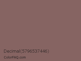 Decimal 5796537446 Color is a normal red color and the nearest color is Deep Taupe #7e5e60. Hex code #866462 and RGB value is rgb(134,100,98). In RGB color space, this color is composed of 53% red, 39% green, 38% blue, In CMYK color space, this color is composed of 0% cyan, 25% magenta, 27% yellow , 47% black , In HSL color space, this color has a hue angle of 3° , 16% saturation and 45% lightness.