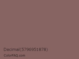 Decimal 5796951878 Color is a normal red color and the nearest color is Deep Taupe #7e5e60. Hex code #876362 and RGB value is rgb(135,99,98). In RGB color space, this color is composed of 53% red, 39% green, 38% blue, In CMYK color space, this color is composed of 0% cyan, 27% magenta, 27% yellow , 47% black , In HSL color space, this color has a hue angle of 2° , 16% saturation and 46% lightness.
