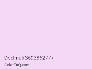 Decimal 369386277 Color is a very light magenta color and the nearest color is Pink Lace #ffddf4. Hex code #f4d8f5 and RGB value is rgb(244,216,245). In RGB color space, this color is composed of 96% red, 85% green, 96% blue, In CMYK color space, this color is composed of 0% cyan, 12% magenta, 0% yellow , 4% black , In HSL color space, this color has a hue angle of 298° , 59% saturation and 90% lightness.