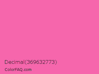 Decimal 369632773 Color is a light rose color and the nearest color is Hot Pink #ff69b4. Hex code #f566ad and RGB value is rgb(245,102,173). In RGB color space, this color is composed of 96% red, 40% green, 68% blue, In CMYK color space, this color is composed of 0% cyan, 58% magenta, 29% yellow , 4% black , In HSL color space, this color has a hue angle of 330° , 88% saturation and 68% lightness.
