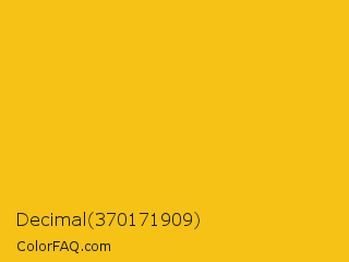 Decimal 370171909 Color is a normal yellow color and the nearest color is Deep Lemon #f5c71a. Hex code #f5c215 and RGB value is rgb(245,194,21). In RGB color space, this color is composed of 96% red, 76% green, 8% blue, In CMYK color space, this color is composed of 0% cyan, 21% magenta, 91% yellow , 4% black , In HSL color space, this color has a hue angle of 46° , 92% saturation and 52% lightness.