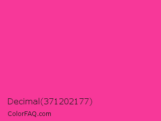 Decimal 371202177 Color is a normal rose color and the nearest color is Wild Strawberry Crayola #ff3399. Hex code #f73899 and RGB value is rgb(247,56,153). In RGB color space, this color is composed of 97% red, 22% green, 60% blue, In CMYK color space, this color is composed of 0% cyan, 77% magenta, 38% yellow , 3% black , In HSL color space, this color has a hue angle of 330° , 92% saturation and 59% lightness.