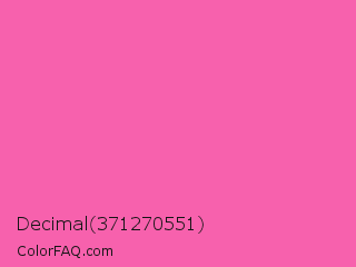Decimal 371270551 Color is a light rose color and the nearest color is Hot Pink #ff69b4. Hex code #f761ad and RGB value is rgb(247,97,173). In RGB color space, this color is composed of 97% red, 38% green, 68% blue, In CMYK color space, this color is composed of 0% cyan, 61% magenta, 30% yellow , 3% black , In HSL color space, this color has a hue angle of 330° , 90% saturation and 67% lightness.