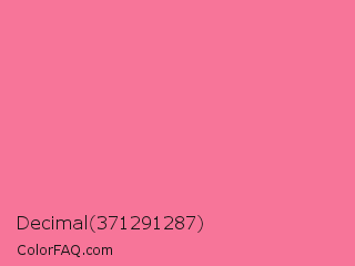 Decimal 371291287 Color is a light rose color and the nearest color is Cyclamen #f56fa1. Hex code #f77599 and RGB value is rgb(247,117,153). In RGB color space, this color is composed of 97% red, 46% green, 60% blue, In CMYK color space, this color is composed of 0% cyan, 53% magenta, 38% yellow , 3% black , In HSL color space, this color has a hue angle of 343° , 89% saturation and 71% lightness.