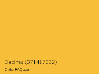 Decimal 371417232 Color is a normal orange color and the nearest color is Saffron #f4c430. Hex code #f7be3a and RGB value is rgb(247,190,58). In RGB color space, this color is composed of 97% red, 75% green, 23% blue, In CMYK color space, this color is composed of 0% cyan, 23% magenta, 77% yellow , 3% black , In HSL color space, this color has a hue angle of 42° , 92% saturation and 60% lightness.