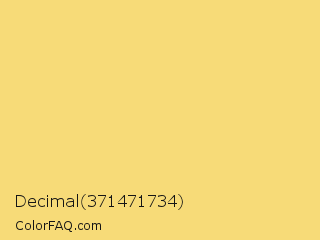 Decimal 371471734 Color is a light yellow color and the nearest color is Mellow Yellow #f8de7e. Hex code #f7db78 and RGB value is rgb(247,219,120). In RGB color space, this color is composed of 97% red, 86% green, 47% blue, In CMYK color space, this color is composed of 0% cyan, 11% magenta, 51% yellow , 3% black , In HSL color space, this color has a hue angle of 47° , 89% saturation and 72% lightness.