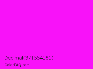 Decimal 371554181 Color is a normal magenta color and the nearest color is Magenta / Fuchsia #ff00ff. Hex code #f812f9 and RGB value is rgb(248,18,249). In RGB color space, this color is composed of 97% red, 7% green, 98% blue, In CMYK color space, this color is composed of 0% cyan, 93% magenta, 0% yellow , 2% black , In HSL color space, this color has a hue angle of 300° , 95% saturation and 52% lightness.