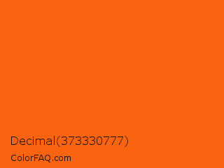 Decimal 373330777 Color is a normal orange color and the nearest color is Blaze Orange #ff6600. Hex code #fa630f and RGB value is rgb(250,99,15). In RGB color space, this color is composed of 98% red, 39% green, 6% blue, In CMYK color space, this color is composed of 0% cyan, 60% magenta, 94% yellow , 2% black , In HSL color space, this color has a hue angle of 21° , 96% saturation and 52% lightness.