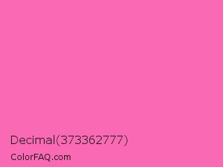Decimal 373362777 Color is a light rose color and the nearest color is Hot Pink #ff69b4. Hex code #fa69b3 and RGB value is rgb(250,105,179). In RGB color space, this color is composed of 98% red, 41% green, 70% blue, In CMYK color space, this color is composed of 0% cyan, 58% magenta, 28% yellow , 2% black , In HSL color space, this color has a hue angle of 329° , 94% saturation and 70% lightness.