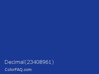 Decimal 23408961 Color is a normal blue color and the nearest color is Torea Bay #0f2d9e. Hex code #193995 and RGB value is rgb(25,57,149). In RGB color space, this color is composed of 10% red, 22% green, 58% blue, In CMYK color space, this color is composed of 83% cyan, 62% magenta, 0% yellow , 42% black , In HSL color space, this color has a hue angle of 225° , 71% saturation and 34% lightness.