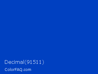 Decimal 91511 Color is a normal blue color and the nearest color is Absolute Zero #0048ba. Hex code #0040c1 and RGB value is rgb(0,64,193). In RGB color space, this color is composed of 0% red, 25% green, 76% blue, In CMYK color space, this color is composed of 100% cyan, 67% magenta, 0% yellow , 24% black , In HSL color space, this color has a hue angle of 220° , 100% saturation and 38% lightness.
