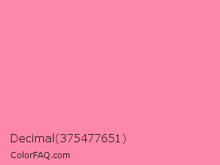 Decimal 375477651 Color is a light rose color and the nearest color is Tickle Me Pink #fc89ac. Hex code #fd88a9 and RGB value is rgb(253,136,169). In RGB color space, this color is composed of 99% red, 53% green, 66% blue, In CMYK color space, this color is composed of 0% cyan, 46% magenta, 33% yellow , 1% black , In HSL color space, this color has a hue angle of 343° , 97% saturation and 76% lightness.
