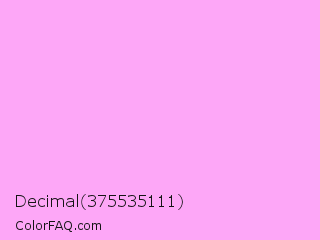 Decimal 375535111 Color is a very light magenta color and the nearest color is Rich Brilliant Lavender #f1a7fe. Hex code #fda7f7 and RGB value is rgb(253,167,247). In RGB color space, this color is composed of 99% red, 65% green, 97% blue, In CMYK color space, this color is composed of 0% cyan, 34% magenta, 2% yellow , 1% black , In HSL color space, this color has a hue angle of 304° , 96% saturation and 82% lightness.
