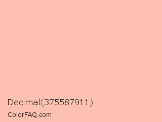 Decimal 375587911 Color is a very light color and the nearest color is Wax Flower #ffc0a8. Hex code #fdc2af and RGB value is rgb(253,194,175). In RGB color space, this color is composed of 99% red, 76% green, 69% blue, In CMYK color space, this color is composed of 0% cyan, 23% magenta, 31% yellow , 1% black , In HSL color space, this color has a hue angle of 15° , 95% saturation and 84% lightness.